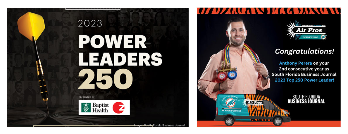 Air Pros founder Anthony Perera was featured for the 2nd consecutive year in the South Florida Business Journal’s 2023 Power Leaders 250. The list offers “an overview of the movers and shakers who run notable companies and organizations across Broward, Miami-Dade and Palm Beach counties”. Using a series of questions and answers, the list highlights some fun facts to get to know a little more about the distinguished businessmen and women on it.