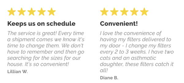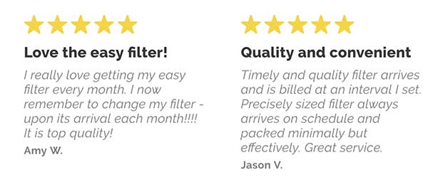 Yahoo! We have partnered with Filter Easy to offer automatic home delivery of air filters to your residence. Never forget to change your air filter again: These filters will arrive at your door every e.g. 2 months – whatever duration you like! You can cancel the subscription at any time giving homeowners piece of mind.